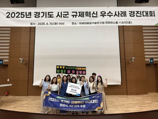 경기도 화성시는 10일 차세대융합기술연구원에서 열린 '2025년 경기도 시군 규제혁신 우수사례 경진대회'에서 우수상을 받으며 4년 연속 수상을 기록했다고 11일 밝혔다.