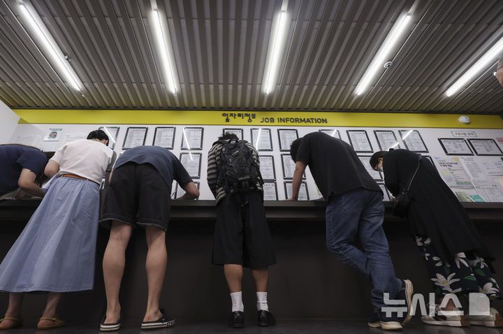 [서울=뉴시스] 김근수 기자 = 11일 서울 마포구 서부고용복지플러스센터 일자리 게시판 앞에서 구직자들이 이력서를 작성하고 있다. 통계청이 발표한 '2025년 5월 고용동향'에 따르면 지난달 취업자 수는 2916만명으로 지난해 같은 기간보다 24만5000명(0.8%) 증가했다.5월 증가폭(24만5000명)은 지난해 4월(26만1000명) 이후 처음으로 20만명대를 회복해 13개월 만에 최고치를 나타냈다. 2025.06.10. ks@newsis.com