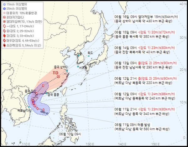 12일 09시 베트남 다낭 동북동쪽 약 240km부근해상