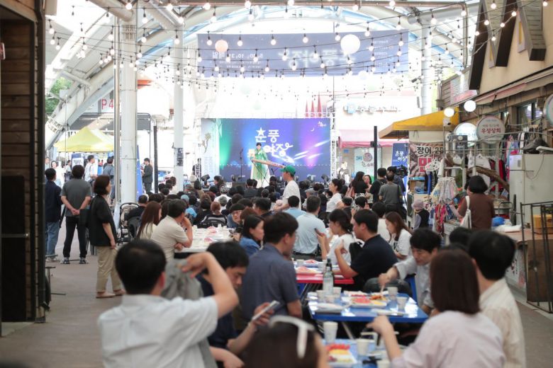 야시장에는 기존 풍물시장 상인과 외부 입주 상인이 운영하는 29개 매대가 운영 중이다. 이는 지난해보다 두 배 가까이 증가한 것이고, 단계적으로 더 늘어날 예정이다. 손님들은 이 곳에서 꼬치, 닭발, 후라이드치킨, 모듬전 등의 먹거리를 사다가 테이블에서 자유롭게 먹을 수 있다.