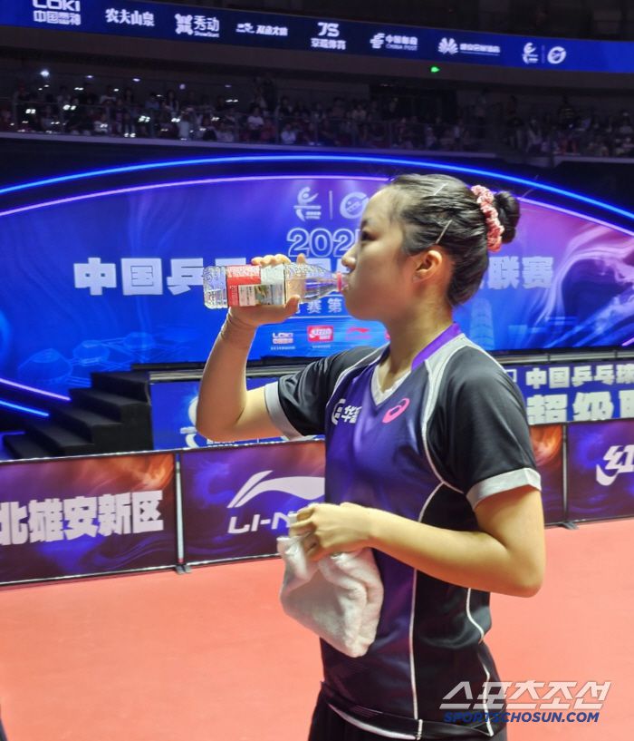 신유빈은 지난 9일 중국 허베이 시옹안스포츠센터에서 열린 첫 경기에서 청두 소속 시앙준린을 상대로 3대1 역전승으로 짜릿한 첫승을 신고했다. 1게임을 7-11로 내줬지만 이후 3게임을 11-3, 11-4, 11-5로 가볍게 잡아내며 환호했다. 신유빈의 에이스 활약에 힘입어 황스는 게임스코어 3대0, 마수걸이승을 거뒀다. 경기 후 믹스트존(공동취재구역)에선 중국 방송사 등 현지 취재진의 관심도 뜨거웠다. 신유빈은 10일 상하이 룽텅과의 맞대결서도 이틀 연속 주전으로 나섰다. 하지만 2게임 허저우자이에게 0대3(9-11, 5-11,7-11)으로 패했고, 팀도 매치스코어 0대3으로 패했다.