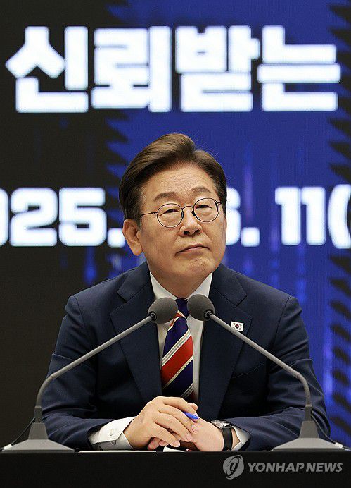 (서울=연합뉴스) 홍해인 기자 = 이재명 대통령이 11일 서울 영등포구 한국거래소에서 열린 주식시장 불공정거래 근절을 위한 현장 간담회에서 참석자 질문을 듣고 있다. 2025.6.11 [대통령실통신사진기자단]