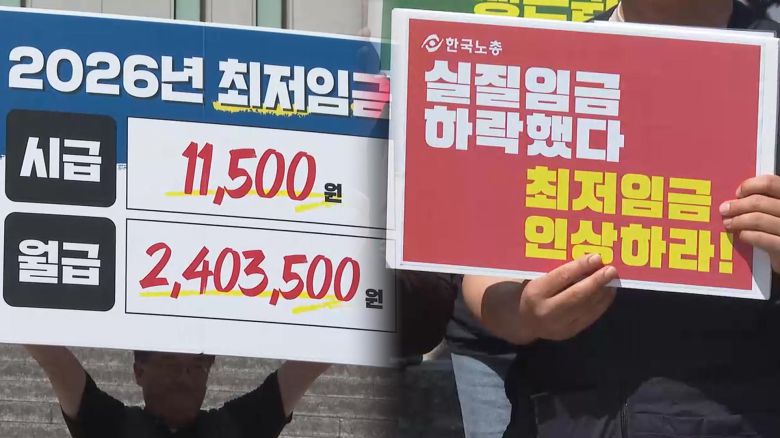 한국노총과 민주노총, 양대 노총 등으로 구성된 '모두를 위한 최저임금 운동본부'는 오늘(11일) 기자회견을 열고 2026년 적용 최저임금 시급 11,500원, 209시간 기준 월 240만 3,500원을 요구했습니다.