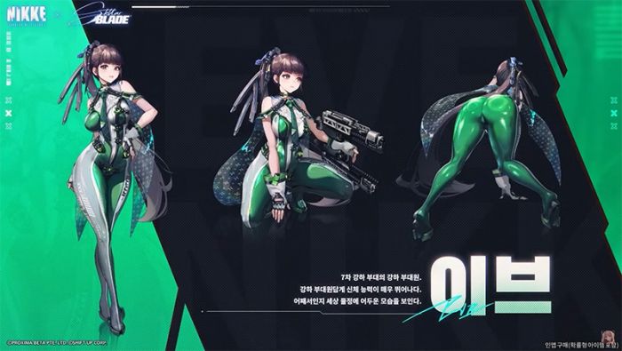 <니케>에는 플레이어블 캐릭터로 ‘이브’와 ‘릴리’, 스토리 NPC로 ‘아담’이 등장한다. 이와 함께 ‘포스트 아포칼립스’라는 공통점을 지닌 두 작품의 세계관이 자연스럽게 연결되는 이벤트 스토리를 선보인다. 이벤트 스토리의 핵심 주제는 ‘기억’이며, 팬들에게는 에그후드라는 닉네임으로 알려진 정재성 시나리오 팀장이 집필을 맡았다.