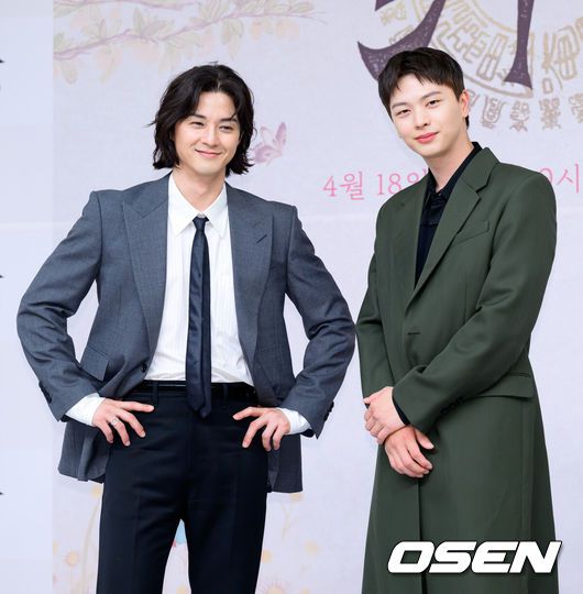 [OSEN=이대선 기자] 17일 오후 서울 목동 SBS에서 SBS새 금토드라마‘귀궁’ 제작발표회가 열렸다.‘보물섬’후속으로 방송되는SBS새 금토드라마‘귀궁’은영매의 운명을 거부하는 무녀 여리와 여리의 첫사랑 윤갑의 몸에 갇힌 이무기 강철이가 왕가에 원한을 품은 팔척귀에 맞닥뜨리며 몸과 혼이 단단히 꼬여버리는 육신 쟁탈 판타지 로코. 배우 김지훈과 육성재가 포토타임을 가지고 있다. 2025.04.17 /sunday@osen.co.kr |