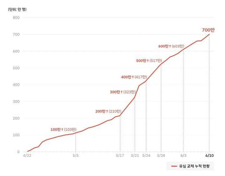SK텔레콤의 유심(USIM) 교체 건수가 누적 700만명을 돌파했다.