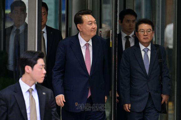 윤석열 전 대통령이 지난 9일 오후 서울 서초구 중앙지방법원에서 열린 내란 우두머리 혐의, 직권남용 권리행사방해 혐의 사건 6차 공판을 마친 후 법원을 나서고 있다. 2025.06.09 사진공동취재단