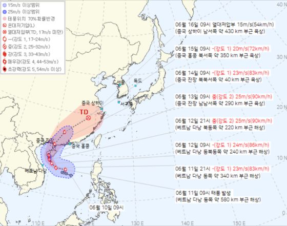 태풍은 내일(12일)과 모레(13일) 중국 광둥성 쪽으로 북상한 뒤 오는 16일 중국 상하이 남서쪽 내륙에서 열대저압부로 약화해 소멸할 것으로 보입니다.