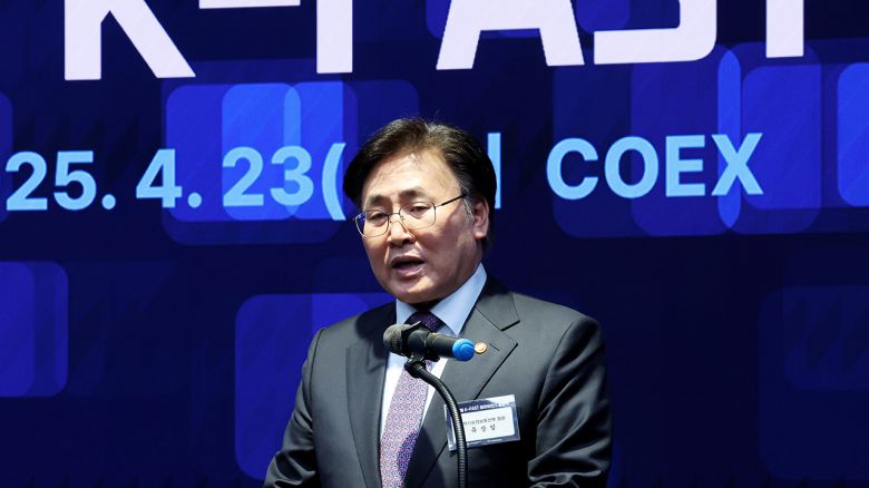 ▲ 유상임 과학기술정보통신부 장관이 지난 4월 23일 서울 강남구 코엑스에서 열린 '글로벌 K-FAST 얼라이언스' 출범식에서 인사말을 하고 있다.