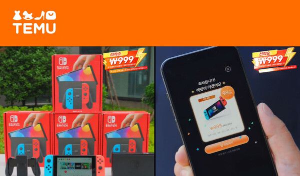 테무가 유튜브를 통해 닌텐도 스위치를 제공하는 이벤트를 진행하면서 선착순 1명에게만 999원에 판매하는 것을 여러 명에게 나눠 주는 것처럼 거짓, 과장 광고했다. /공정거래위원회