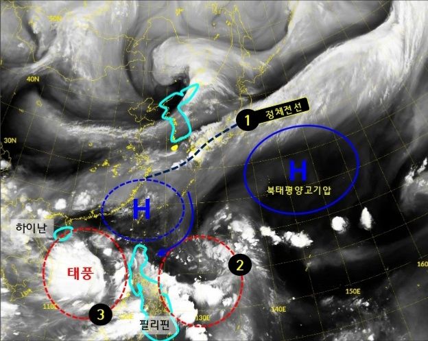 정체전선은 전선 양쪽 기단의 세력이 비슷해 거의 이동하지 않고 일정한 자리에 머물러 있는 전선으로, 이 영향으로 비가 내릴 경우 장마철에 들어간 것으로 본다. 13일까지 제주 예상 강수량은 20~60㎜로, 많게는 80㎜ 넘는 비가 쏟아지며 호우 특보가 내려질 수도 있다.