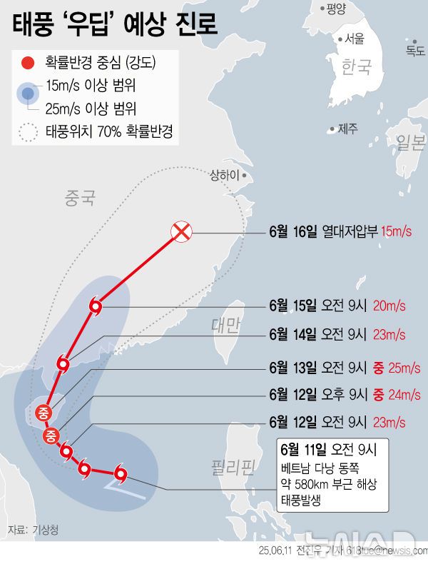 [서울=뉴시스] 문예성 기자 = 올해 제1호 태풍 '우딥'이 오는 13일 중국 남부 하이난도에 상륙할 것으로 예상되면서 현지 당국이 비상 대응에 돌입했다. 우딥은 마카오가 제출한 이름으로, ‘나비’를 뜻한다.