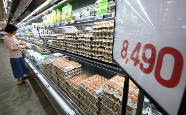 지난 9일 서울 시내 한 대형마트 계란 매대에 소비자들이 계란을 고르고 있다. 뉴시스 |
