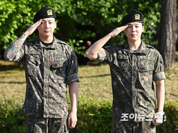 방탄소년단 지민 정국은 11일 경기도 연천 육군 제5보병사단에서 전역을 알렸습니다.