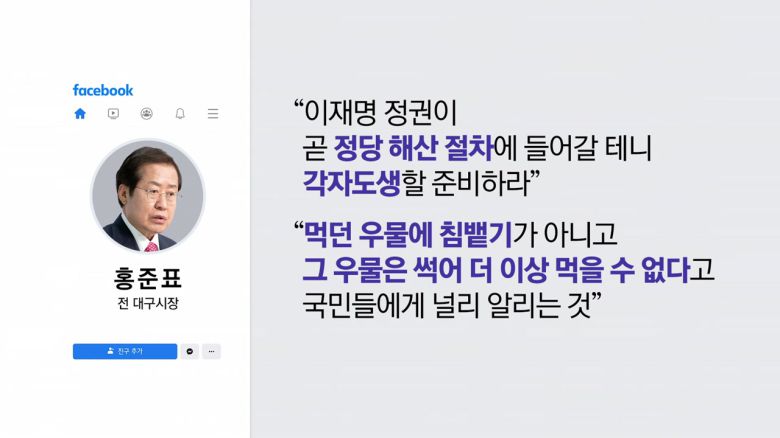 국민의힘을 향해 "이재명 정권이 곧 정당 해산 절차에 들어갈 테니 각자도생할 준비들이나 해라"고 밝힌 겁니다.