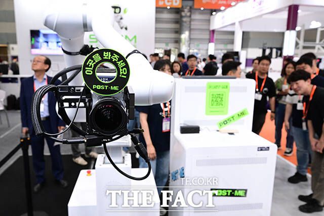 [더팩트ㅣ남윤호 기자] 11일 오후 서울 강남구 삼성동 코엑스에서 열린 '2025 스마트테크코리아'를 찾은 관람객들이 두산로보틱스의 'AI 로봇 스마트 촬영 솔루션' 체험을 위해 줄을 서고 있다.