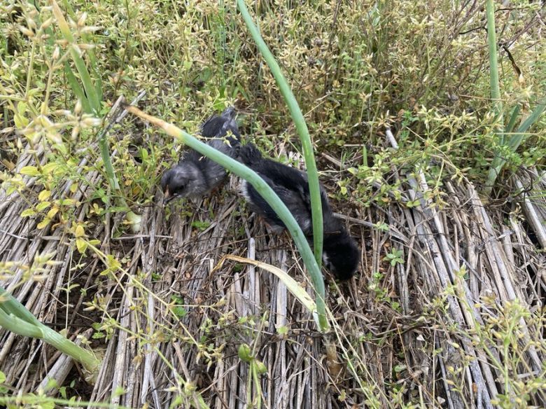 계속 상자 안에만 있는 병아리들이 안쓰러워 밭일할 겸, 병아리를 밭에 풀어줬다. 처음엔 병아리를 밭에 풀어놓은 채 양파밭 풀을 맸다. 한 번 매고, 한 번 보고, 두 번 매고, 또 보고. 물가에 내놓은 아이를 걱정하듯 농사일에 집중할 수 없었다. 밭매는 쪽 앞에 병아리를 두고 일했다. 병아리들은 어떤 상황인지도 모르고 그 좁은 밭에서 신나게 놀았다.