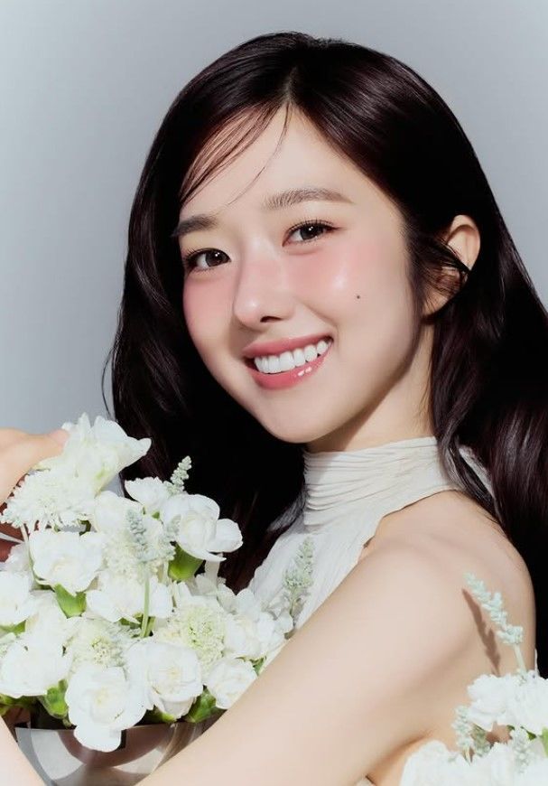 꽃다발을 안고 화사한 미모를 뽐냈다.