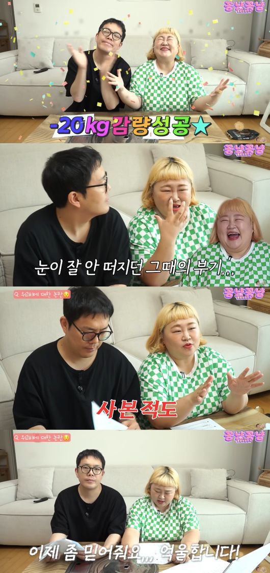 이날 홍윤화는 “모두 박수칠 준비하세요 드디어 20kg가 빠졌습니다”라며 남편 김민기와 자축했다.