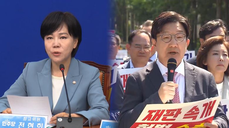 <권성동/국민의힘 원내대표> "본인에 대한 수사와 재판을 회피하면서 정치적 반대자들을 단죄하겠다고 칼을 휘두르겠다고 합니다. 나에게는 한없이 관대하고 남에게는 한없이 엄격한 정권…"