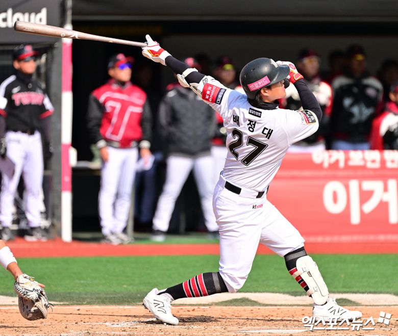 KT는 1회말, 2회말에 이어 3회말에도 점수를 뽑지 못했다. 조대현의 2루수 땅볼, 배정대의 안타, 김상수의 삼진, 안현민의 안타 이후 2사 1·2루에서 장성우가 3루수 땅볼로 아웃됐다.