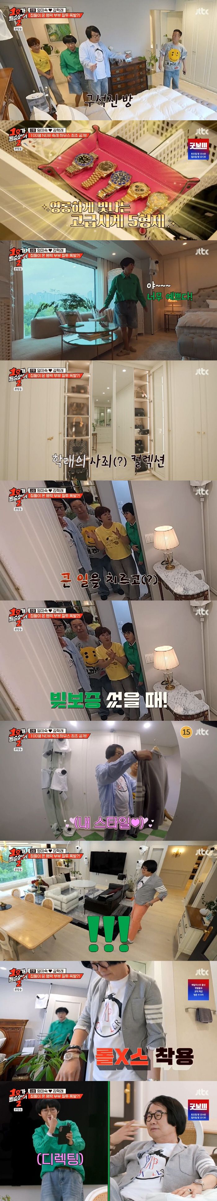 그때 서랍 속 명품 시계 5개를 발견한 최양락은 말을 잇지 못했다. 강재준은 "얼추 가격이 2억~3억 할 것 같다"며 놀랐다. 최양락은 시계를 들고 건너 이웃들에게 자랑, "우리 형 이정도다"고 해 웃음을 자아냈다.