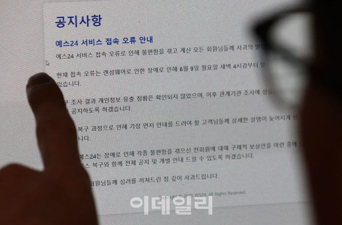 앞서 예스24는 이날 오후 공개한 2차 입장문을 내고 “최고보안책임자를 비롯한 관련 부서가 KISA와 협력해 원인 분석 및 복구 작업에 총력을 다하고 있다”며 “정보보호팀을 보유하고 있어 해당 절차에 따라 KISA와 공동 조사를 진행하고 있다”고 설명한 바 있다.