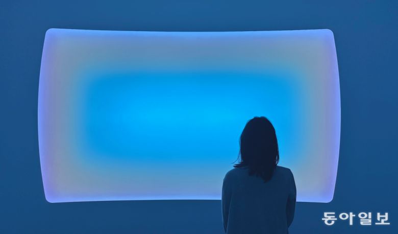 터렐은 강원 원주시 뮤지엄 산에 상설 전시관이 있다. 여기서 ‘스카이스페이스’ ‘스페이스 디비전’ 등 대형 설치 작품을 2013년부터 전시해 한국 관객에게도 인지도가 높다. 서울에서 개인전이 열리는 것은 2008년 이후 처음. 갤러리 공간에서 전시하는 만큼 비교적 작은 규모의 작품을 선보인다. 그럼에도 빛에 온전히 빠져들어 몰입하는 경험을 할 수 있는 설치 작품 위주로 전시가 구성됐다.