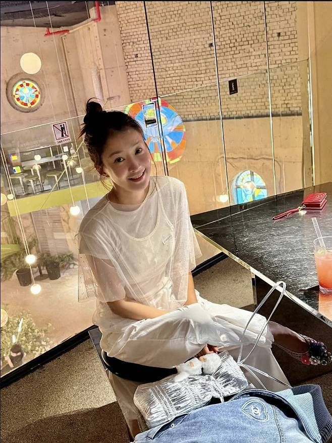 사진 속 이시영은 도심의 한 감성 공간에서 화사한 올화이트 스타일을 뽐냈다.