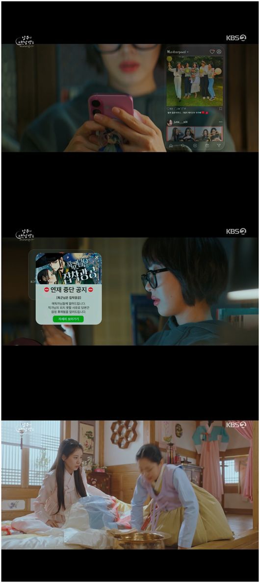 무엇보다 이곳은 최애 웹소설 공간이었다. 다정하고 싹싹하며 불굴의 역경을 이겨내는 여주 조은애(권한솔 분)와 그를 사랑하는 다정한 서브 남주 정수겸(서범준 분), 그리고 왕실의 사냥개라 불리는 남자주인공 경선군 이번(옥택연 분)의 사랑을 구경할 수 있다는 게 그를 자극시켰다.