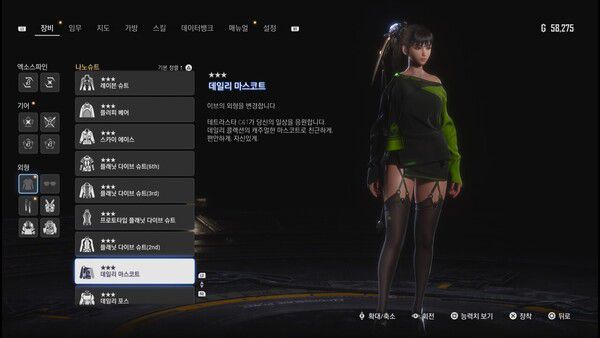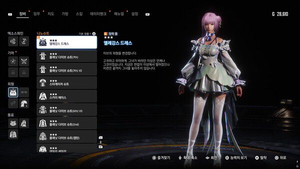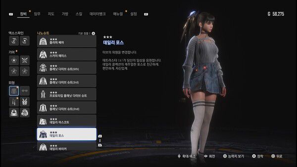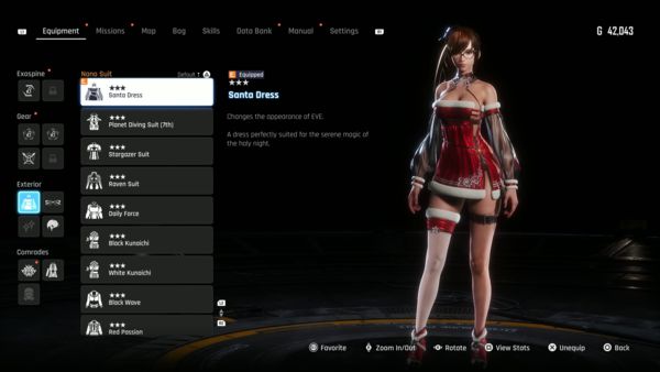 PS5 버전 출시 이후 정식 업데이트와 '니어 오토마타' DLC 추가로 다양한 나노슈트가 등장했다. 여기에 '승리의 여신: 니케' DLC까지 더해져, 니케 인기 캐릭터들의 의상을 이브가 직접 착용할 수 있게 됐다.