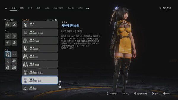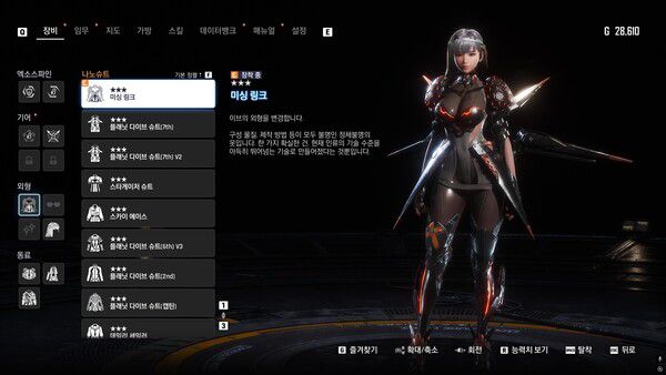 일부 나노슈트는 서브 퀘스트나 의뢰 보상으로도 획득할 수 있다. 모든 나노슈트를 수집하고 싶다면 필드 탐색뿐 아니라 퀘스트도 빠짐없이 챙기는 편이 좋다. 다양한 루트를 통해 수집 요소가 분산돼 있어, 이를 찾아가는 과정 자체가 또 하나의 즐거움이 된다.