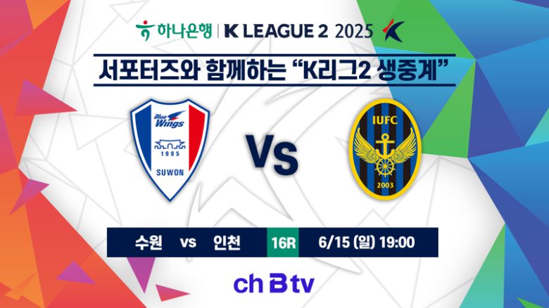 특히 이번 중계는 추천과 심사를 거쳐 선정된 팀별 서포터 1명이 객원 해설로 참여해 지역민이자 팬의 시각에서 경기를 분석한다. 서포터들은 충남아산과 천안 경기에는 ‘골 때리는 그녀들’에 출연한 정종봉 해설위원과 오수빈 캐스터, 수원과 인천 전에는 정종봉 해설위원, 박용식 캐스터와 함께 4명의 목소리로 현장감을 더할 예정이다. ‘ch B tv’의 K리그2 중계는 B tv 케이블 지역채널 1번에서 시청할 수 있으며 방송 일정은 B tv 케이블 화면 내 편성표(EPG)를 통해 확인 할 수 있다.