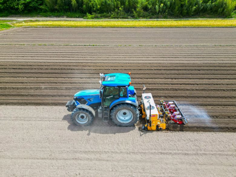 MT9 자율작업 트랙터가 자율작업으로 콩 파종을 하고 있는 모습. [LS엠트론 제공] |