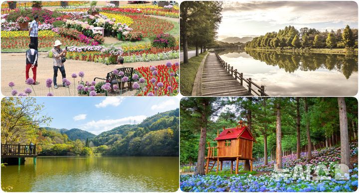 윗줄 왼쪽부터 시계 방향으로 강진 작천마을 코끼리 마을꽃축제, 담양 관방제림, 보성 윤제림, 화순 세량제. (사진=전남도 제공) *재판매 및 DB 금지 |