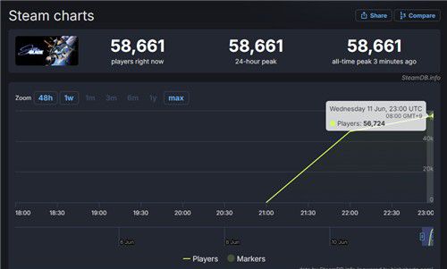 12일 PC 게임 플랫폼 스팀 통계 사이트 스팀DB에 따르면 스텔라 블레이드 PC 버전은 이날 오전 7시 출시 직후 1시간만에 약 5만7천명의 최대 동시 접속자를 기록했다.