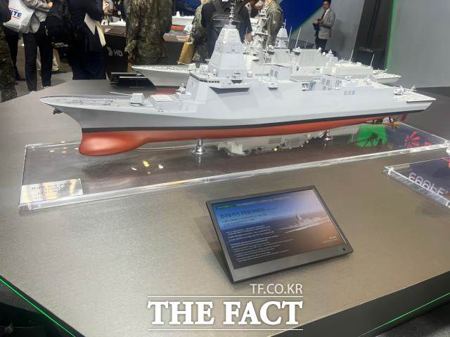 2025 MADEX HD현대중공업 부스에 전시된 한국형 차기 구축함(KDDX) 모형. /최의종 기자 |