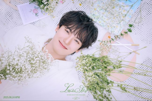 보라색 꽃들이 만개한 꽃밭에서 하늘을 향해 손을 뻗는 모습과, 흰색 꽃다발을 손에 쥔 채 누워 밝게 웃는 모습은 싱그럽고 낭만적인 분위기를 자아내며 신곡에 대한 기대감과 호기심을 자아냈습니다.