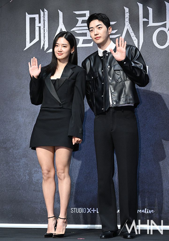 (MHN 이현지 기자) 배우 박주현, 강훈이 11일 오전 서울 구로구 라마다 서울 신도림 호텔에서 진행된 '메스를 든 사냥꾼' 제작발표회에 참석해 포토타임을 갖고 있다.