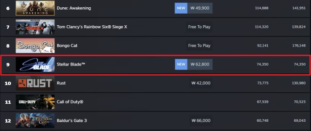 시프트업은 12일 자사에서 개발한 스텔라블레이드 PC 버전을 정식 출시했다. 12일 오전 10시30분 기준 스텔라블레이드 PC 버전은 PC 게임 유통 플랫폼 스팀 내 최다 플레이 순위에서 동시접속자 수 7만4350명으로 9위를 기록하면서, 출시 초반 많은 이용자들의 관심을 받고 있다.