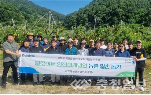 충북 음성군 생극면 소재 생극농협(조합장 한창수)과 서울 영동포구 소재 안진회계법인 임직원들은 지난해에 올해도 생극면 임곡리 소재 복숭아 과수농가를 방문해 복숭아 봉지씌우기 작업 등 농촌일손 돕기를 실시했다고 12일 밝혔다. /음성=김록현기자