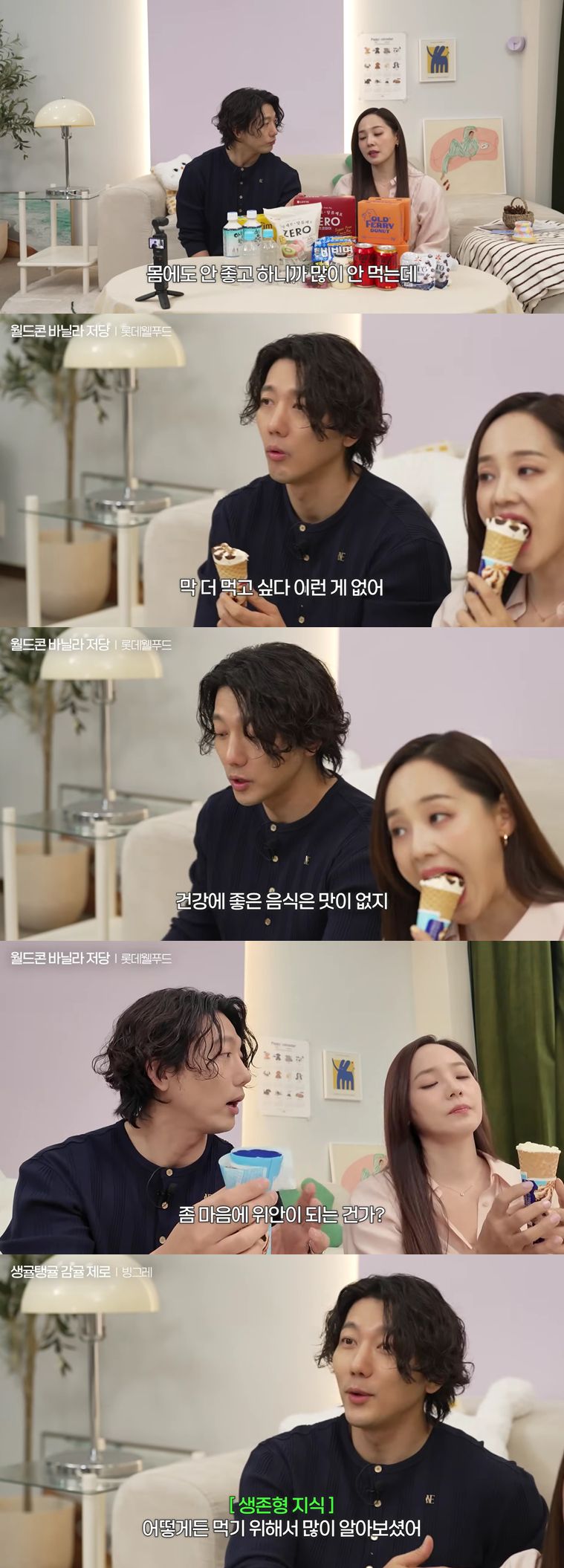 저당 아이스크림의 당류를 확인한 기태영이 "이렇게 먹으면 마음에 위안이 되는 건가? 아니면 당을 좀 덜 섭취했다?"라고 하자 유진은 "설탕을 덜 먹었다"라고 답했다.