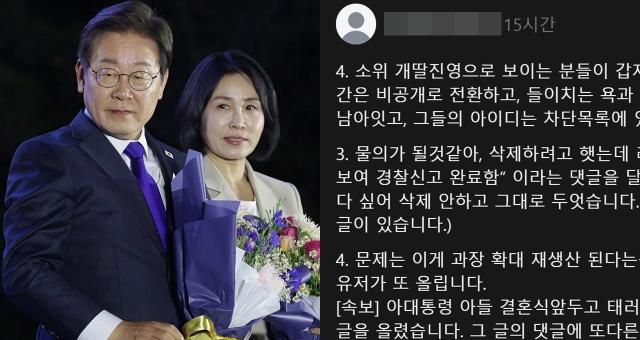 이재명 대통령 아들 결혼식을 겨냥해 사회관계망서비스(SNS)에 협박 글을 게시한 50대 남성이 경찰에 붙잡힌 것과 관련 자신의 SNS에 추가 심경글을 게재했다.