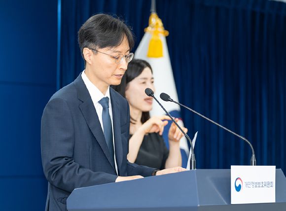 강대현 개인정보보호위원회 조사총괄과장이 6월 12일 오전 서울 종로구 정부서울청사에서 2025년 제13회 개인정보보호위원회 전체회의 안건인 안전조치 소홀로 개인정보를 유출한 2개 대학의 시정조치에 대해 브리핑하고 있다. [사진=개인정보위] |