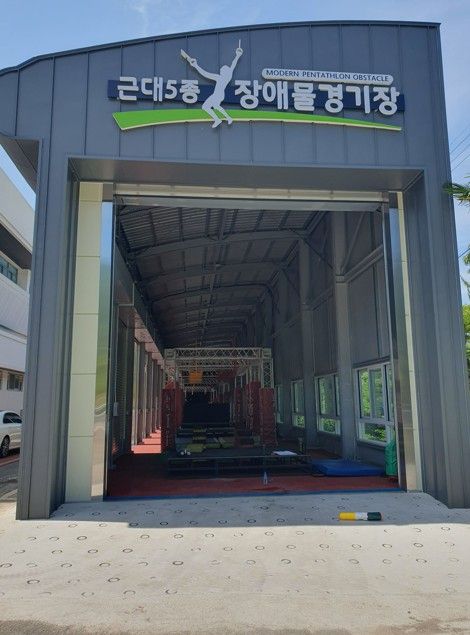 내부에는 근대5종 장애물 경기에 적합한 규격의 장애물 경기기구 14종이 구비됐다.