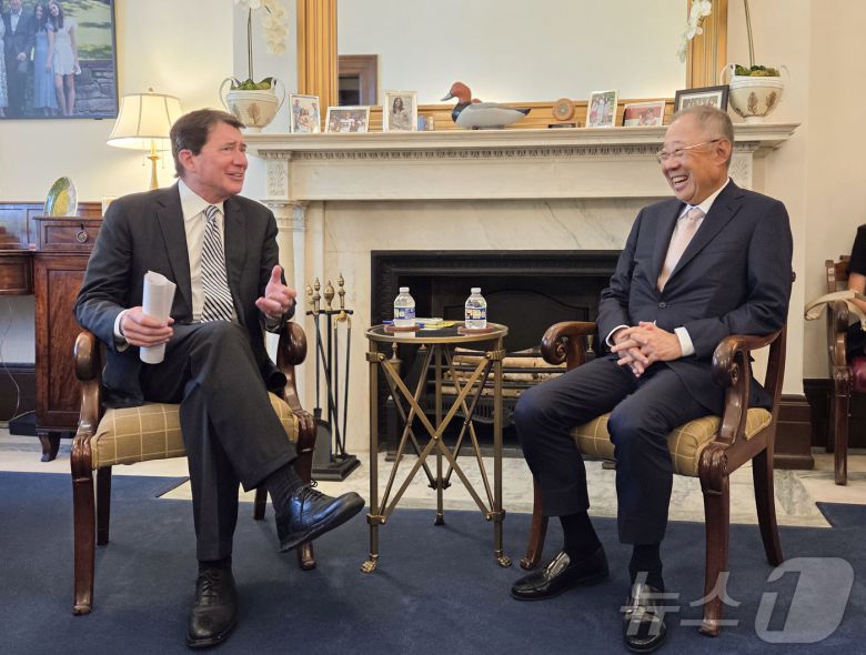 류진 한국경제인협회 회장이 11일(현지시각) 워싱턴D.C.에서 빌 헤거티 상원의원(공화, 테네시)을 만나 주요현안과 양국 경제발전 방안에 대해 논의했다.(한국경제인협회 제공) ⓒ News1 최동현 기자 |