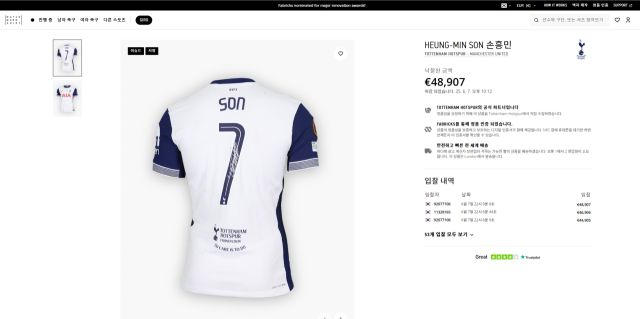 이 중 손흥민의 유니폼은 경매 12시간 만에 2000만원을 넘기며 큰 주목을 받았고, 마지막에는 한국인 두 명이 치열한 경합을 벌이며 가격이 급등했다. 결국 가장 높은 금액을 제시한 한국인 팬이 유니폼 주인이 됐다.