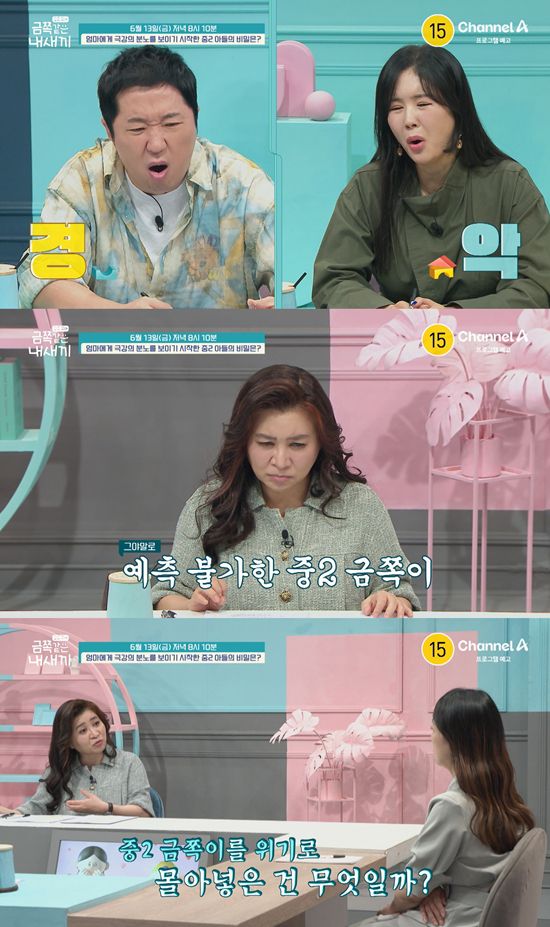 오는 13일 방송되는 채널A '요즘 육아 – 금쪽같은 내새끼'에서는 중학생과 고등학생 남매를 홀로 키우고 있는 싱글맘이 출연한다. 어릴 적에는 애교도 많고 착했던 중2 아들이 최근 6개월 사이 분노를 참지 못하고 집안 물건을 부수거나 엄마에게 폭력적인 행동을 보이기 시작했다는데.