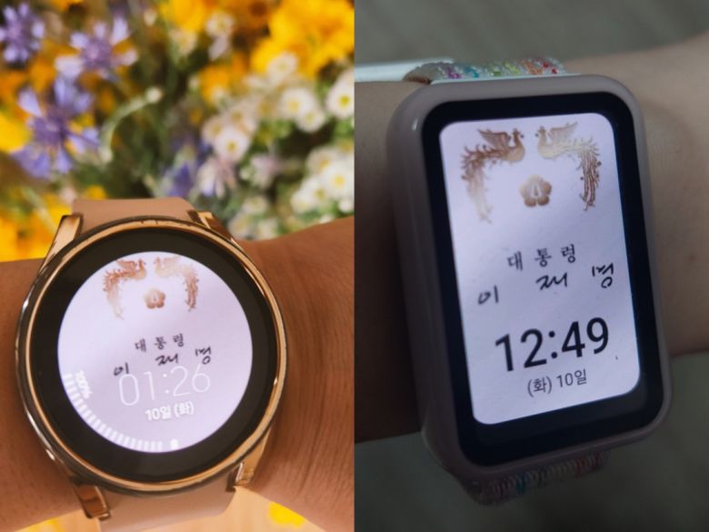 시민들이 이재명 대통령 서명과 대통령 휘장을 활용해 자체 제작한 스마트워치 배경화면 사례. 대통령실 제공