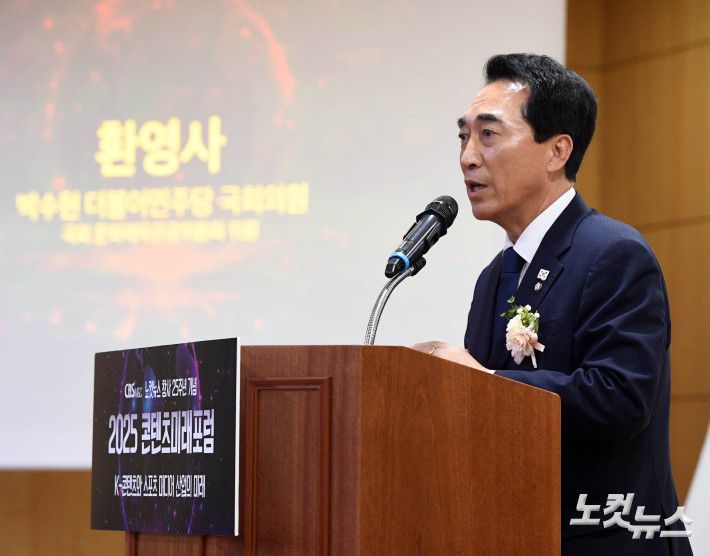 더불어민주당 박수현 의원이 12일 오후 국회 의원회관에서 열린 '2025 콘텐츠미래포럼' 에 참석해 환영사를 하고 있다.저작권자 © CBS 노컷뉴스 무단전재 및 재배포 금지이 기사의 카테고리는 언론사의 분류를 따릅니다.0공유하기